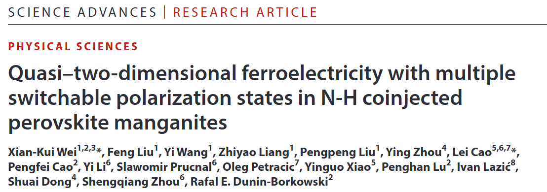 Quasi-two-dimensional ferroelectricity with multiple switchable polarization states in N-H co-injected perovskite manganites